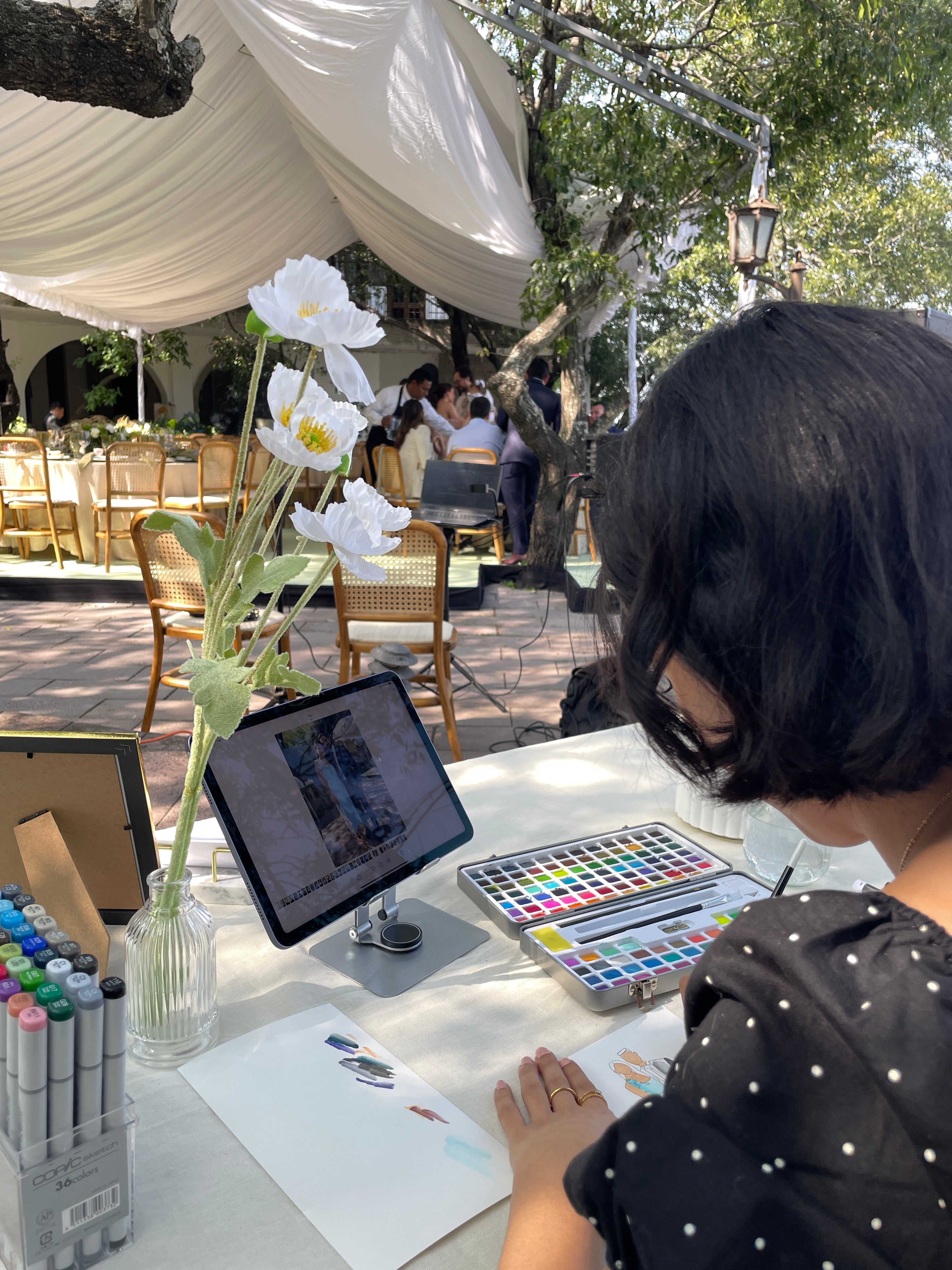 “Retratos pintados en vivo para que tus invitados se lleven un recuerdo único.”
